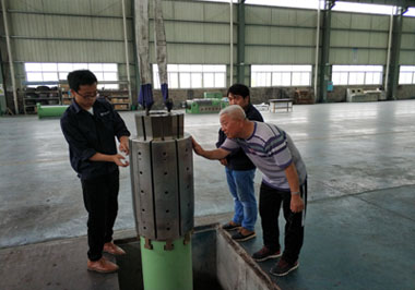 5月20日,中石油巨龍鋼管公司王占理高級工程師、龔亞勇高級技師一行人來我公司參觀考察,并進行了德國SMS MEER公司擴徑機16-18"(φ406-457)擴徑頭總成、荷蘭FONTIJINE GROTNES公司擴徑機750#(φ762-914)擴徑頭總成的終檢驗收工作。