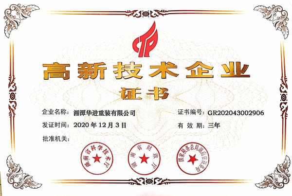 近日,湘潭華進重裝有限公司收到《高新技術企業(yè)證書》。本次系華進重裝首次申請高新技術企業(yè)認定,華進重裝通過認定連續(xù)三年內(nèi)(2020-2022年度)將享受高新技術企業(yè)的相關稅收優(yōu)惠政策。